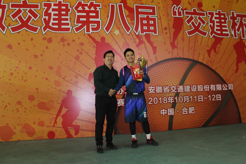 在閉幕式上,安徽交建領導吳學懿、陳明洋、吳小輝、柳欣分別為冠軍、亞軍、季軍和MVP頒發獎杯并表示祝賀。最后,吳總宣布本屆籃球比賽圓滿落幕,期待明年再會!
